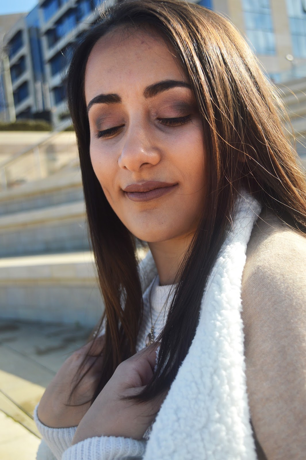 Moving onto the eyeshadow I’ve used my Carli Bybel BH Cosmetics Palette. It is a really affordable and value for money palette. Using a light mauve purple shade as my transition shade, I then applied a shimmer pinkish colour all over my lid. After my eyeshadow I went straight to the Gel Eyeliner by Maybelline in the shade Black. I love using my Inglot Duraline liquid which helps my eyeliner go on even smoother on my lids. The last thing that I did to my eyes is apply my L’Oreal Telescopic Mascara on the top and bottom lashes and … voilà! Eyes done!